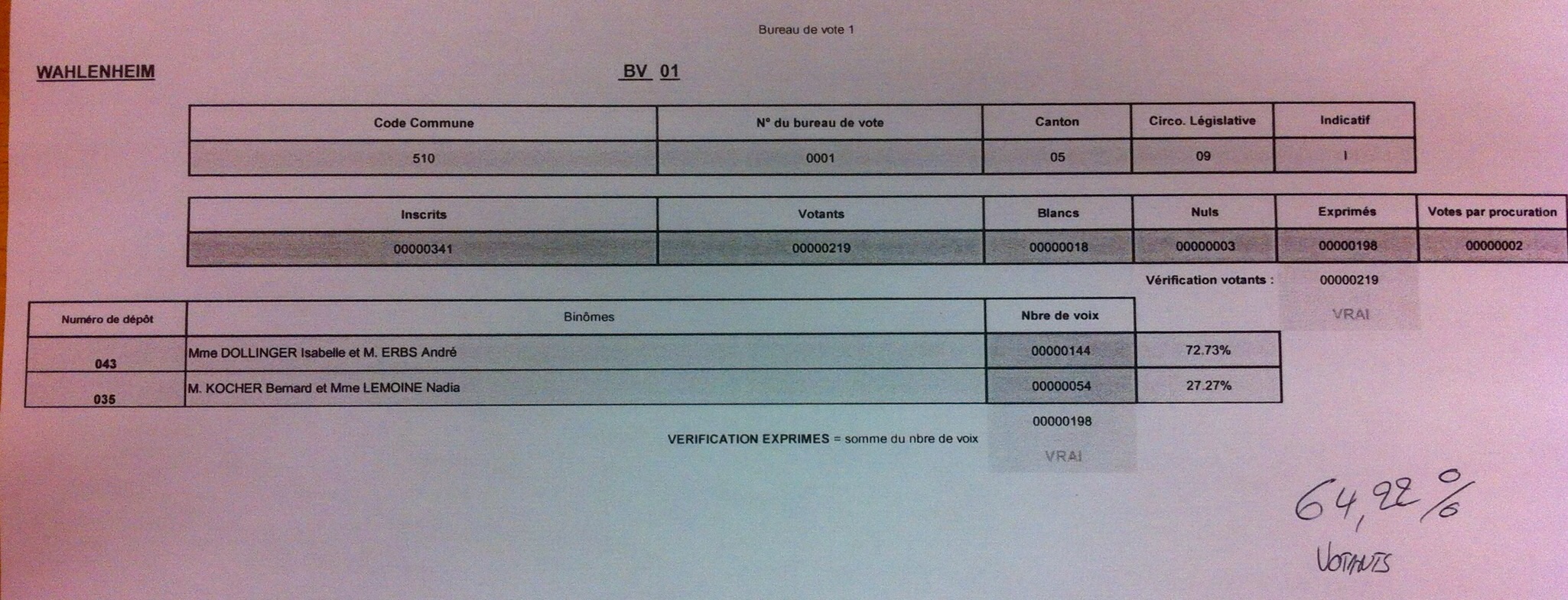 Résultats des elections departementales canton de Haguenau 29/03/2015
