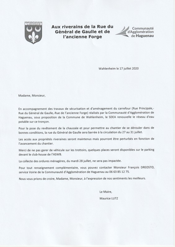 Communication aux riverains (17/07/2020)