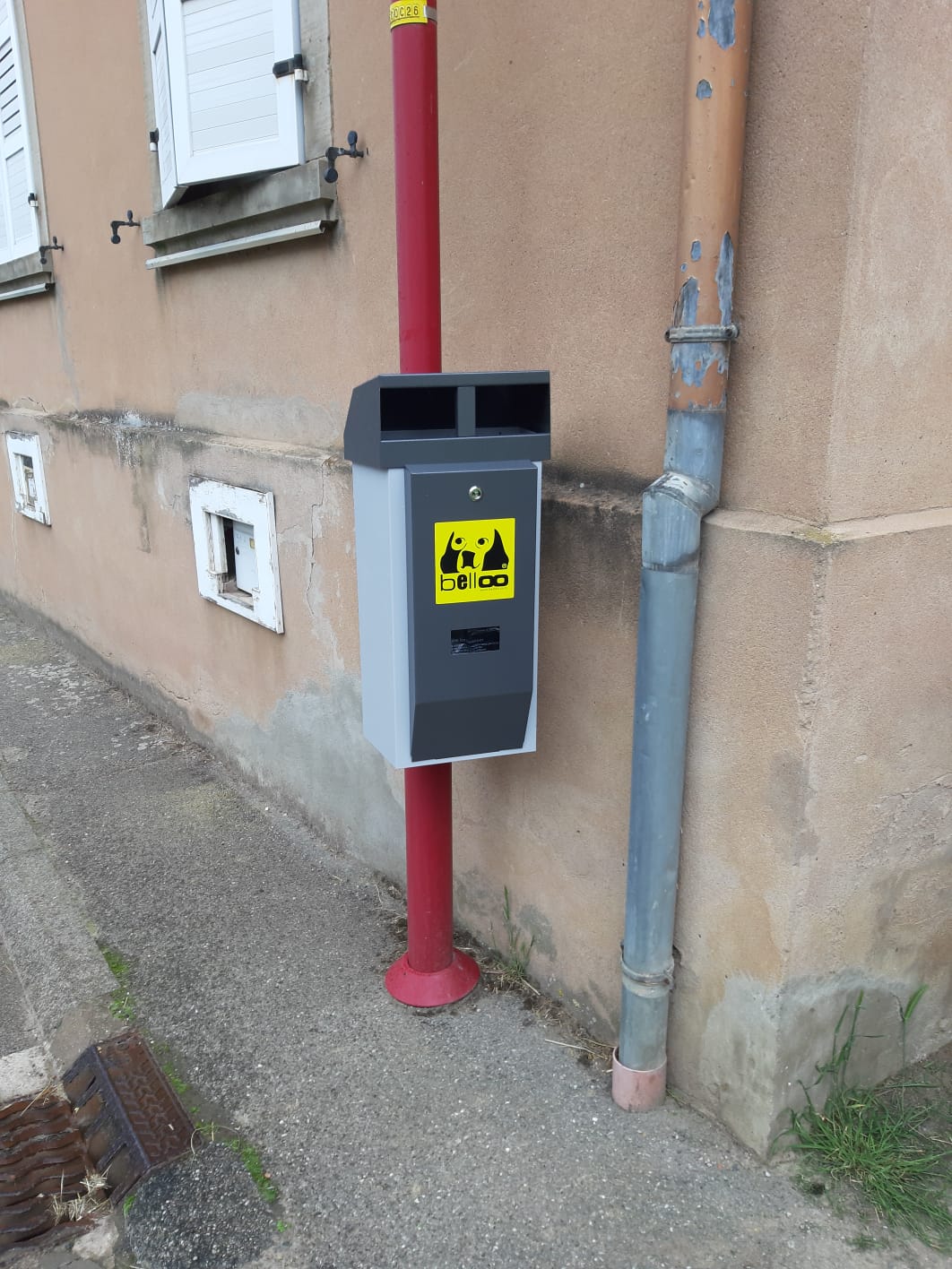 En mai, 5 poubelles canines ont été installées dans les rues du village (sur les 6 achetées). Elles ressemblent à des radars de loin, mais elles sont ergonomiques et faciles à utiliser, grâce au déversoir facile des sacs.