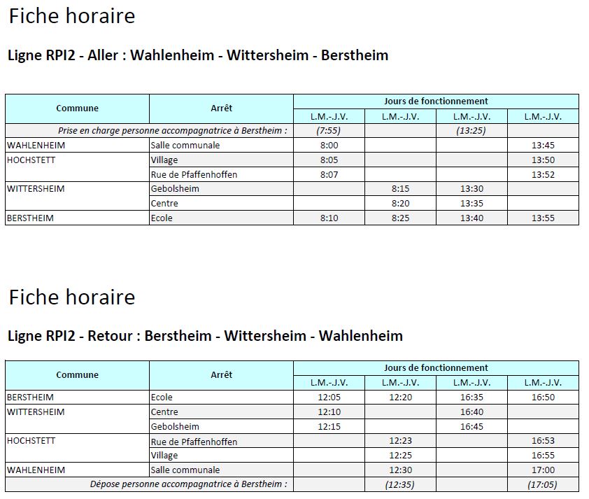 Veuillez trouver les horaires des bus scolaires dans les tableaux ci dessous :