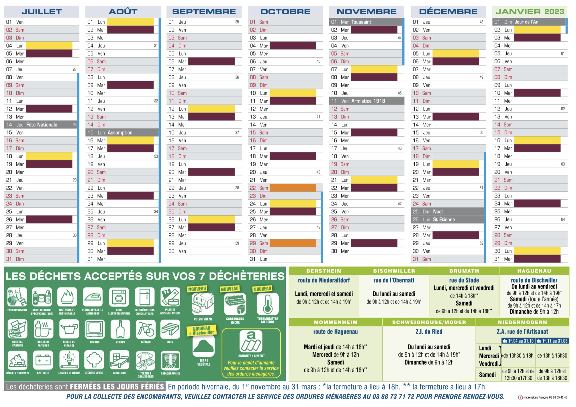 Le calendrier des collectes 2022 des ordures ménagères est disponible en version numérique ci dessous et en version papier, bientôt dans vos boites aux lettres.