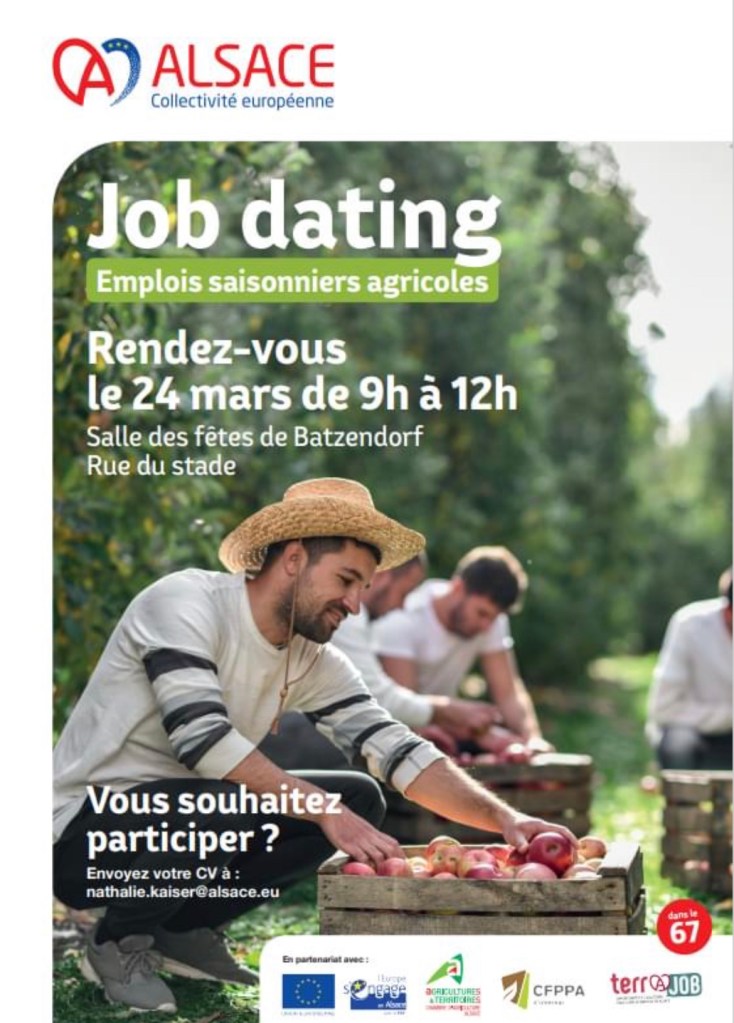 La Chambre d’agriculture et la Collectivité Européenne d’Alsace organisent un Job Dating qui se déroule en présence des producteurs agricoles du Nord Alsace en recherche de main d’œuvre :
