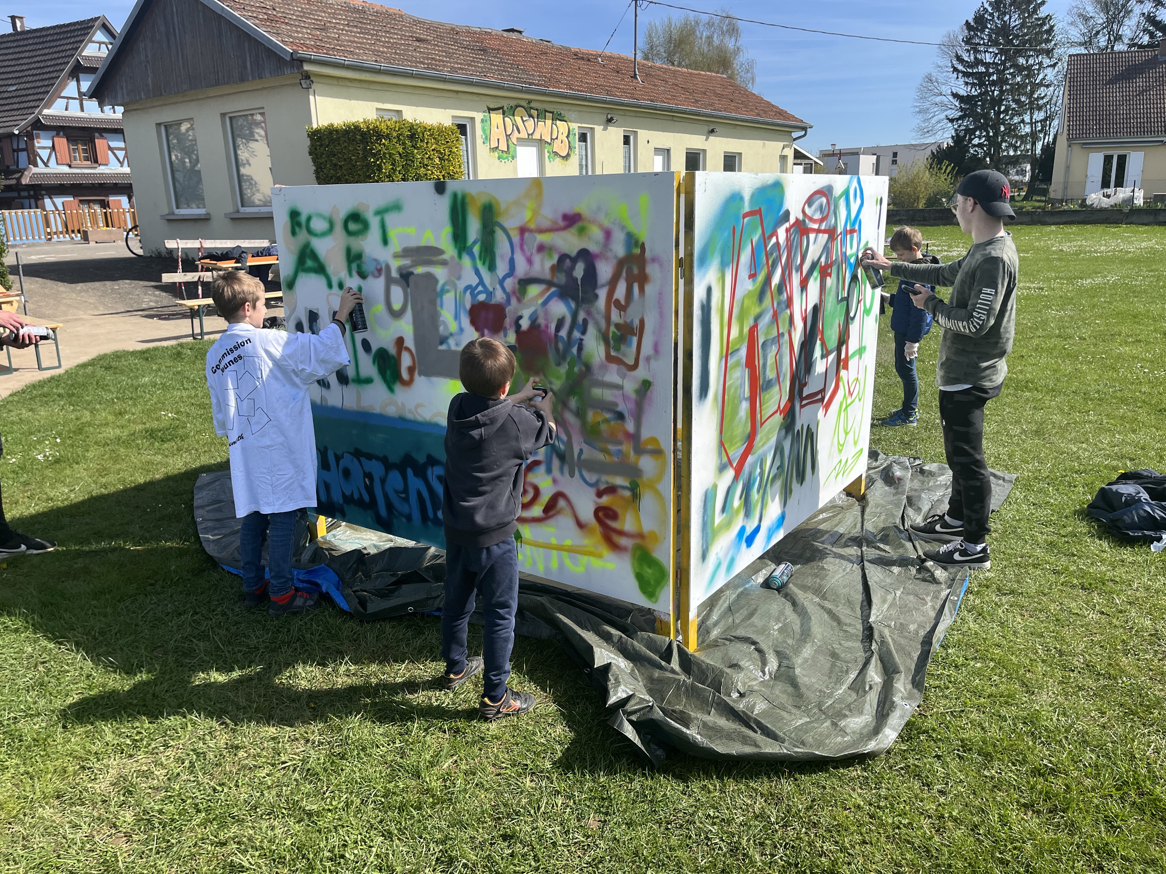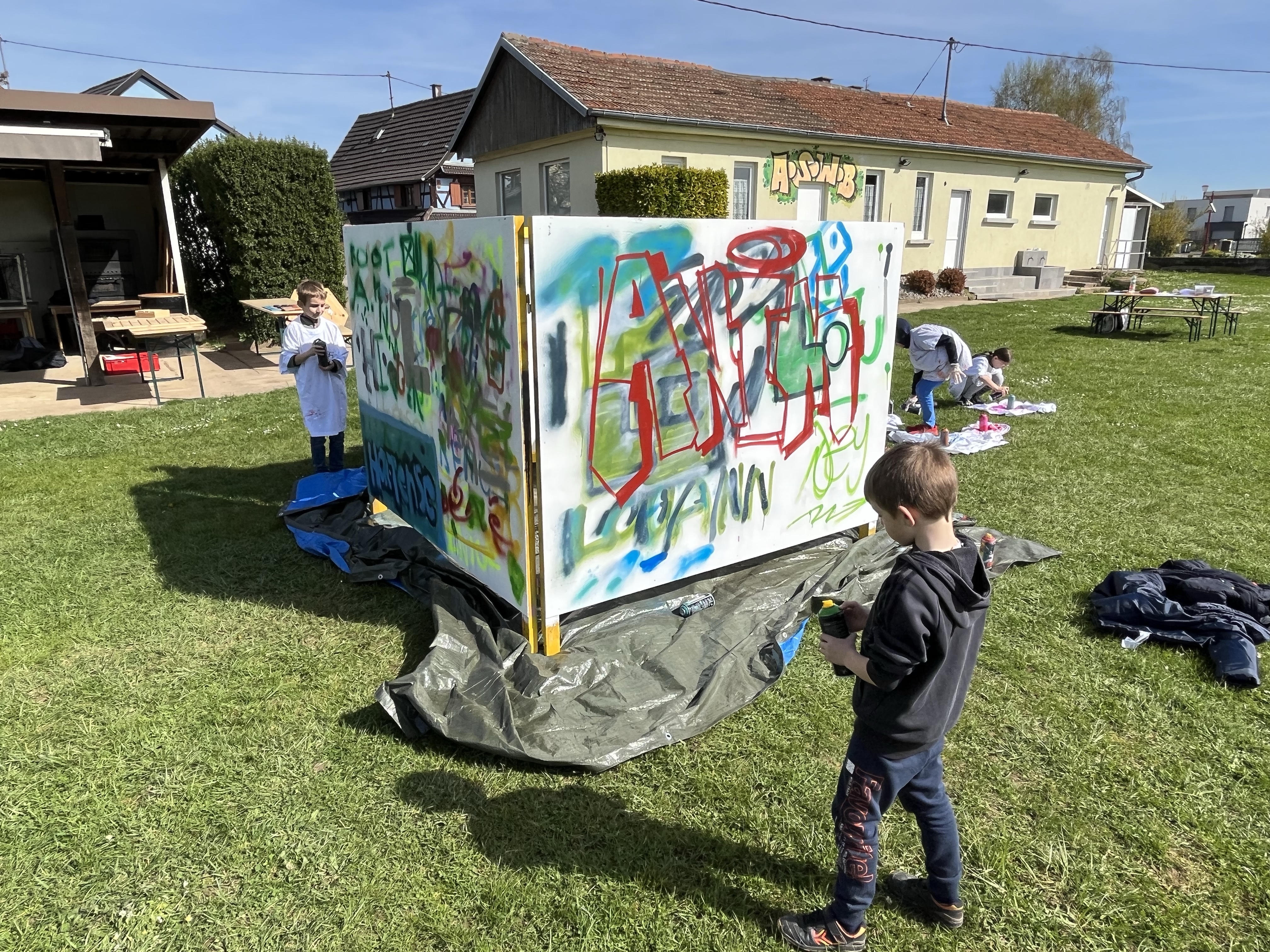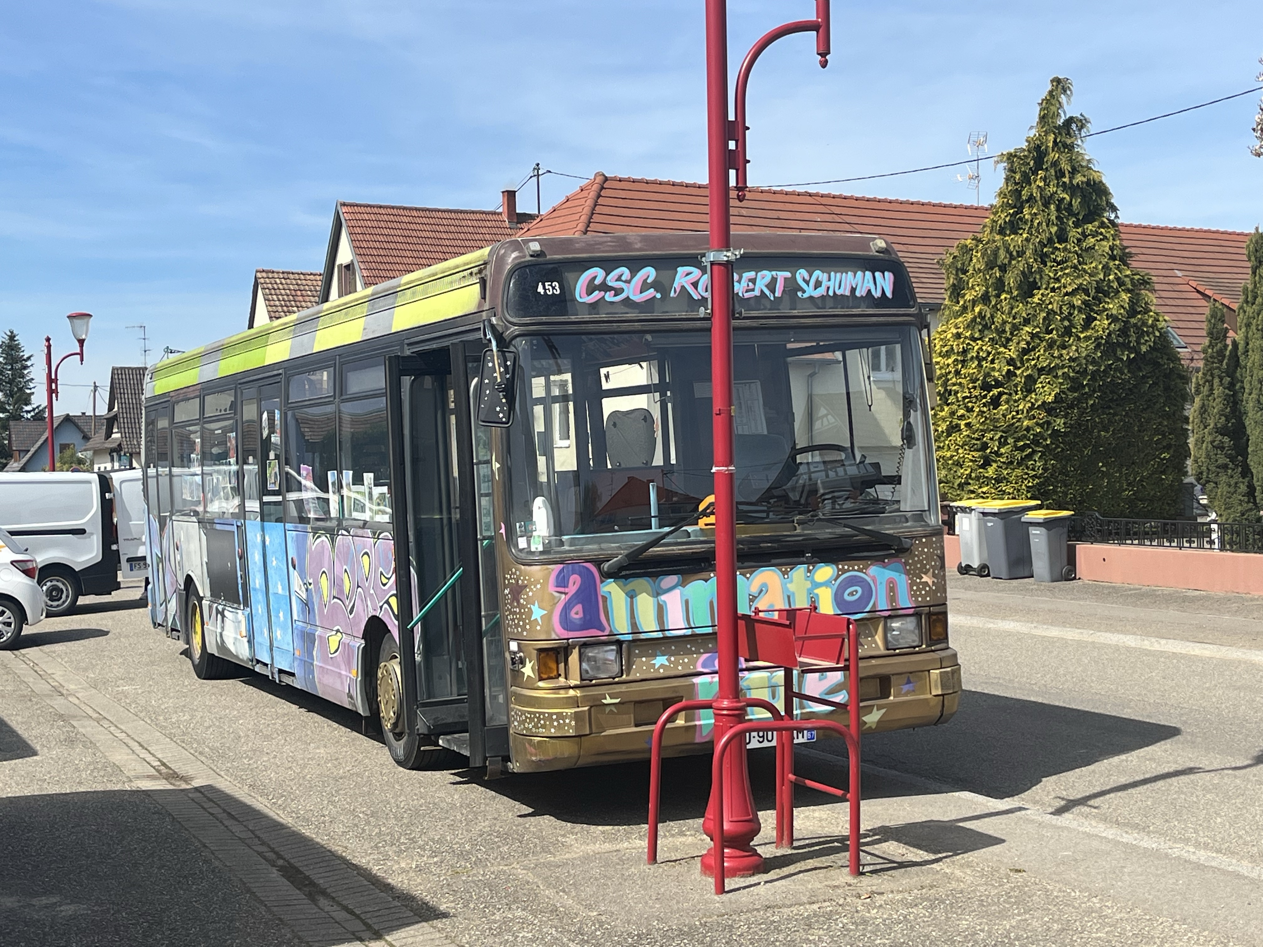 Le bus 🚌 d’animation de la CAH etait à Wahlenheim ce matin👍👍😁: nos jeunes ont pu s’initier au graffiti, aux dessins pour les graff ou aux bricos nouveaux; certains préfèreraient le ballon ⚽️ avec ce beau soleil.