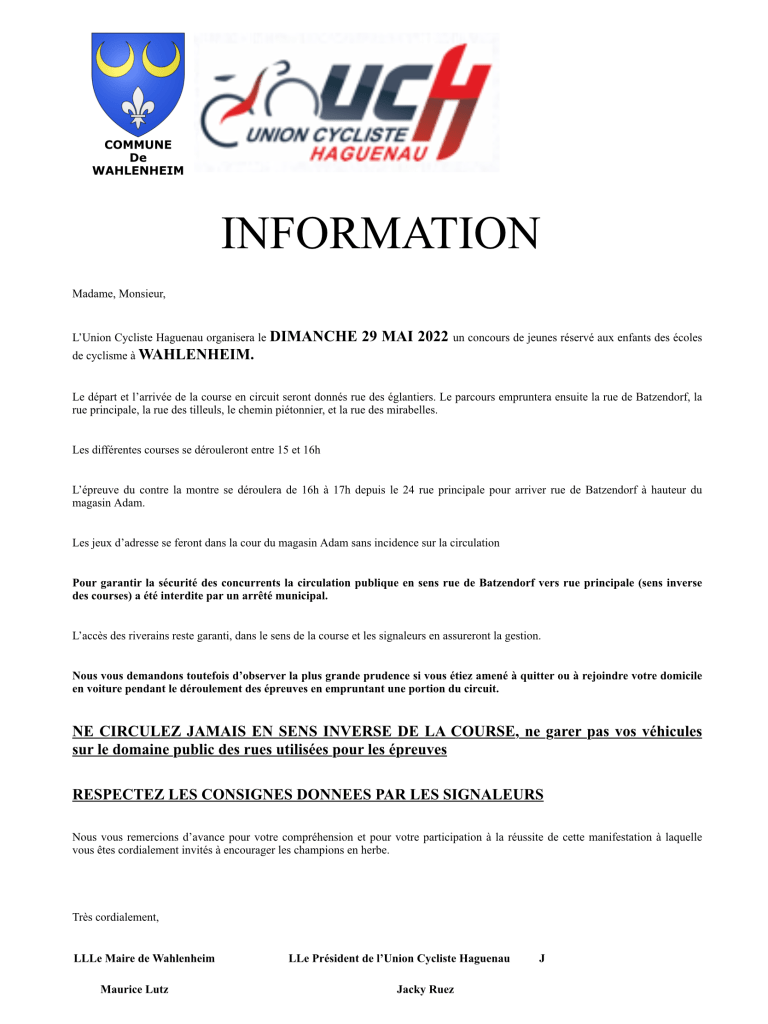 Les épreuves se dérouleront en partie Rue de Batzendorf et Rue Principale.
