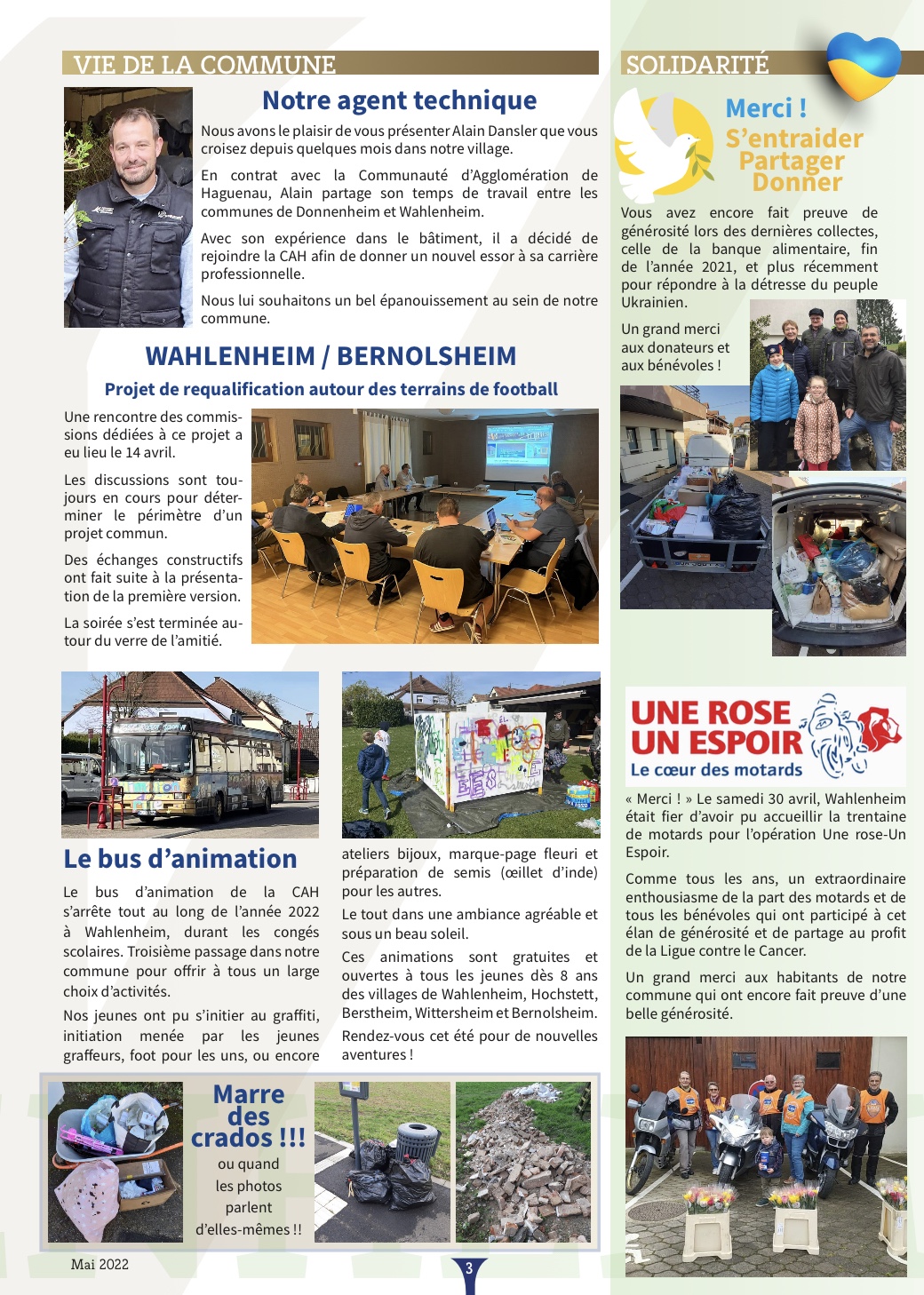 Le nouveau bulletin de Wahlenheim Info de mai 2022 est disponible ci dessous et dans vos boites aux lettres.