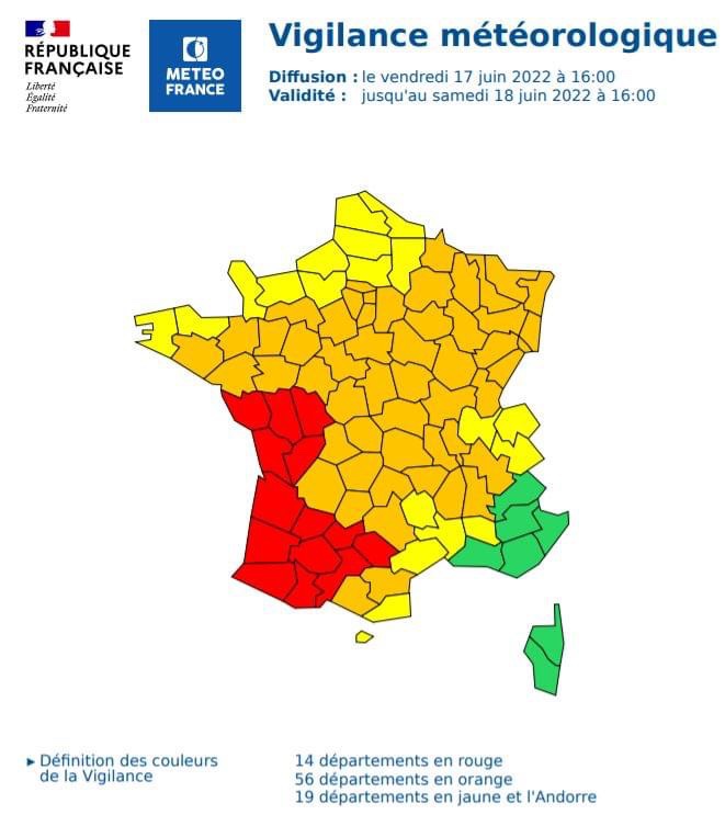 – ✅Fortes chaleurs : 🟠🌡L’Alsace placée en vigilance orange pour canicule : des températures très élevées (jusqu’à 40°C) sont attendues en journée pour le week-end.