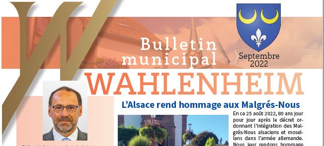 Le nouveau bulletin de Wahlenheim Info de septembre 2022 est disponible ci-dessous et dans vos boites aux lettres.