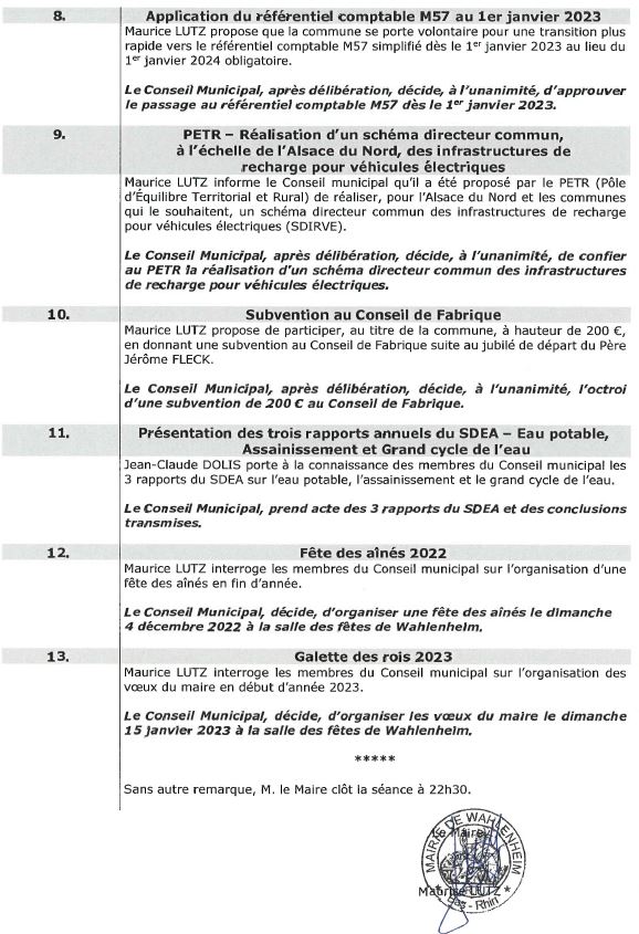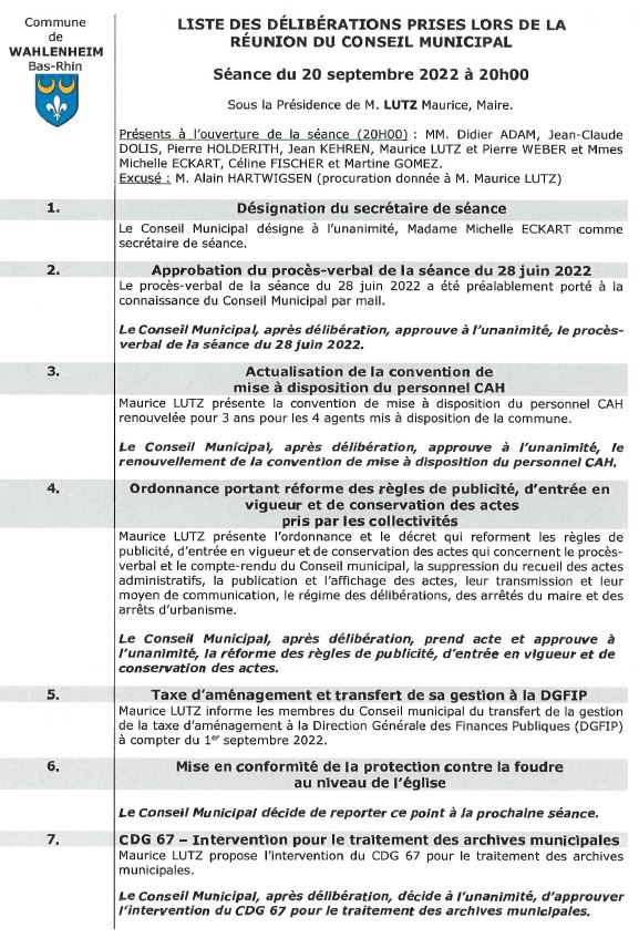 Liste des délibérations du conseil municipal du 20 septembre 2022