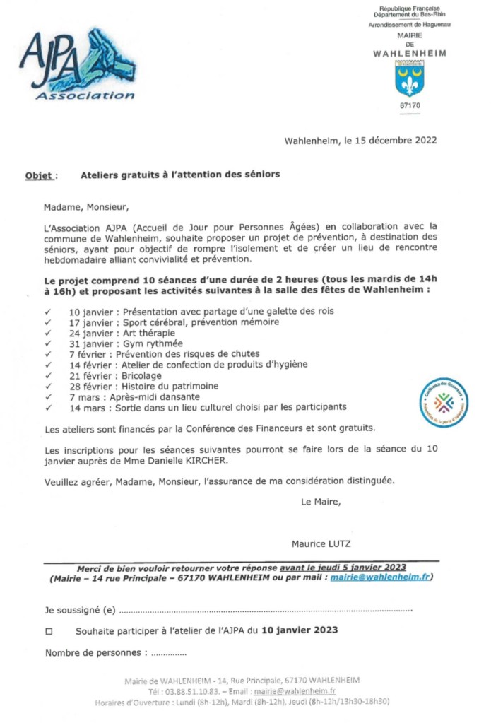 à 16h) et proposant les activités suivantes à la salle des fêtes de Wahlenheim :
