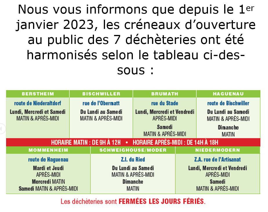 Les horaires des 7 déchèteries de la Cah sont harmonisés depuis le 1er janvier 2023👍✅