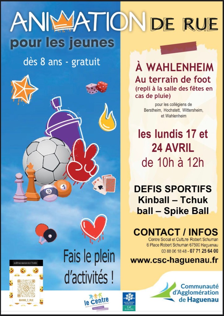 [animation jeunesse☝️🗓✅] les vacances de printemps approchent et l’équipe d animation revient les lundis 17 et 24 avril 2023 à WAHLENHEIM; rdv au terrain de foot de 10h à 12h