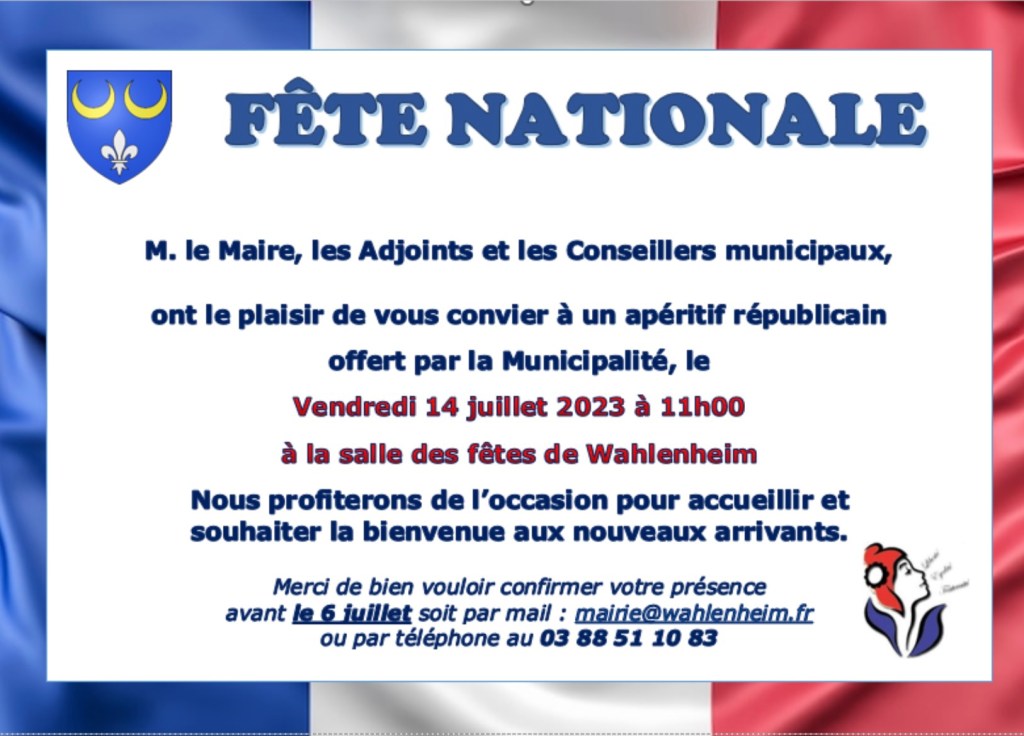 Vendredi 14 juillet 2023 à 11h00 à la salle des fêtes de Wahlenheim