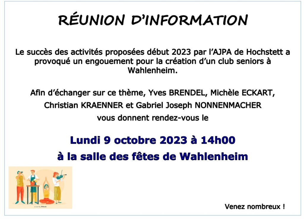 Cet évènement aura lieu le Vendredi 6 octobre à 14h à la Maison des Œuvres de Brumath.