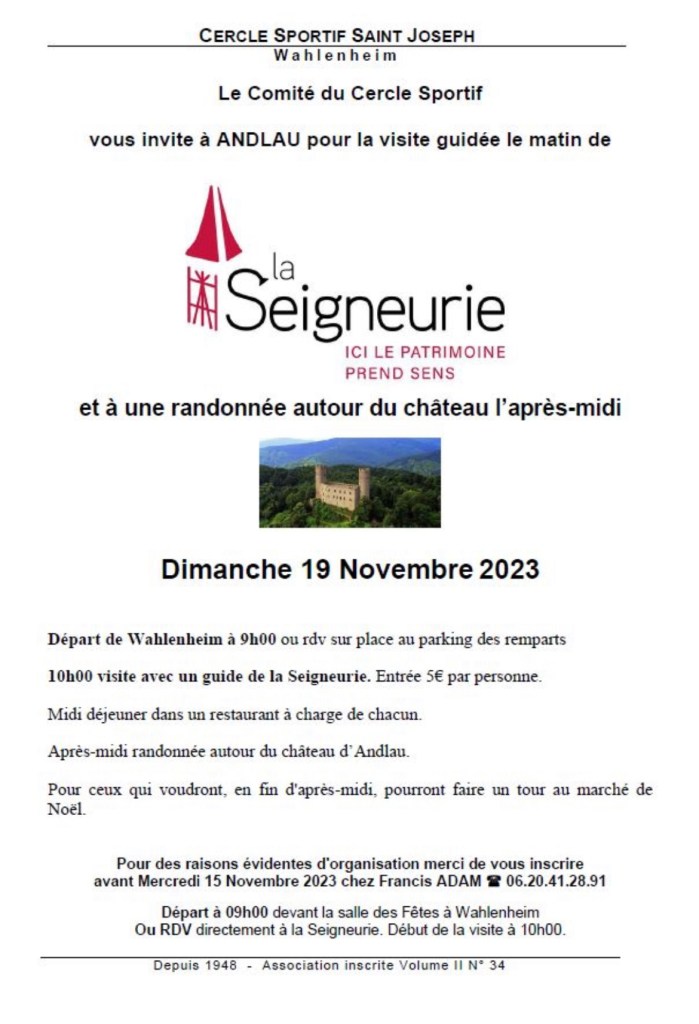[Info Association] : Le Cercle Sportif de Wahlenheim vous propose