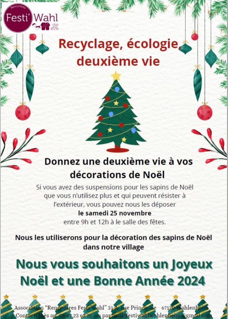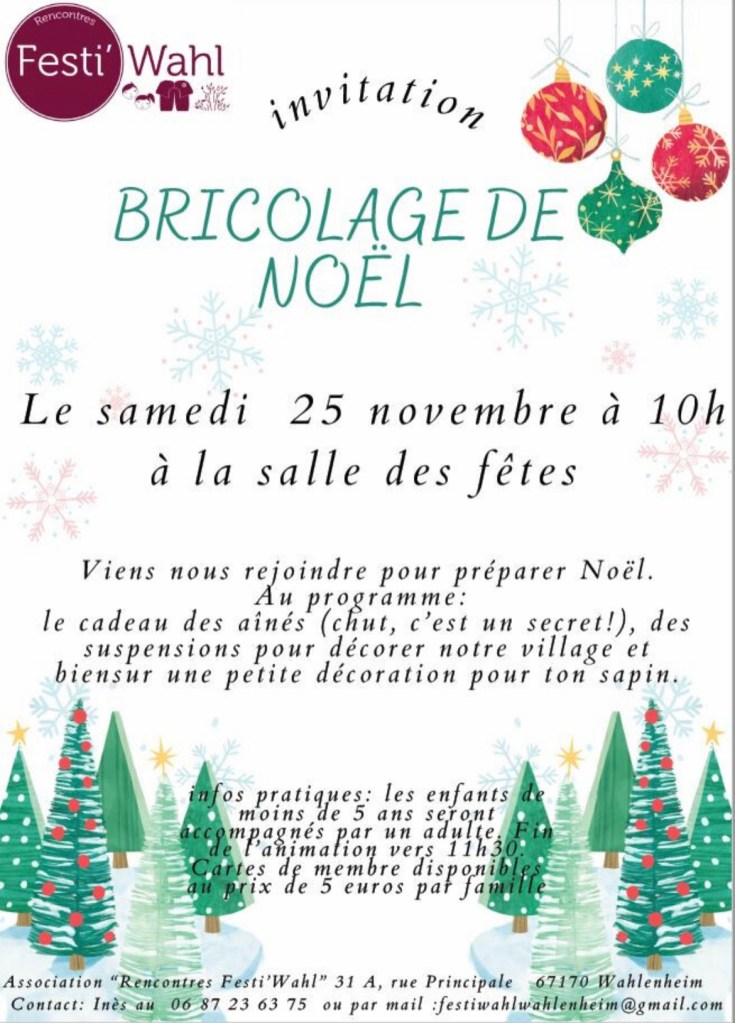 le samedi 25 novembre 2023 à 10h à la salle des fêtes de Wahlenheim