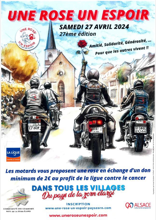 Les motards du village passeront vous proposer une rose contre un don (mini 2âŹ) pour la lutte contre le cancer