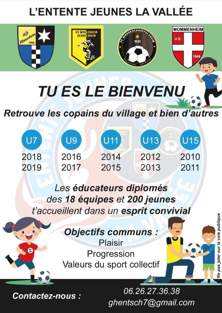 L’école de football de l’entente Jeunes La Vallée (Wahlenheim-Bernolsheim-Niederschaeffolsheim-Mommenhheim-Wittersheim) lance sa campagne de recrutement!