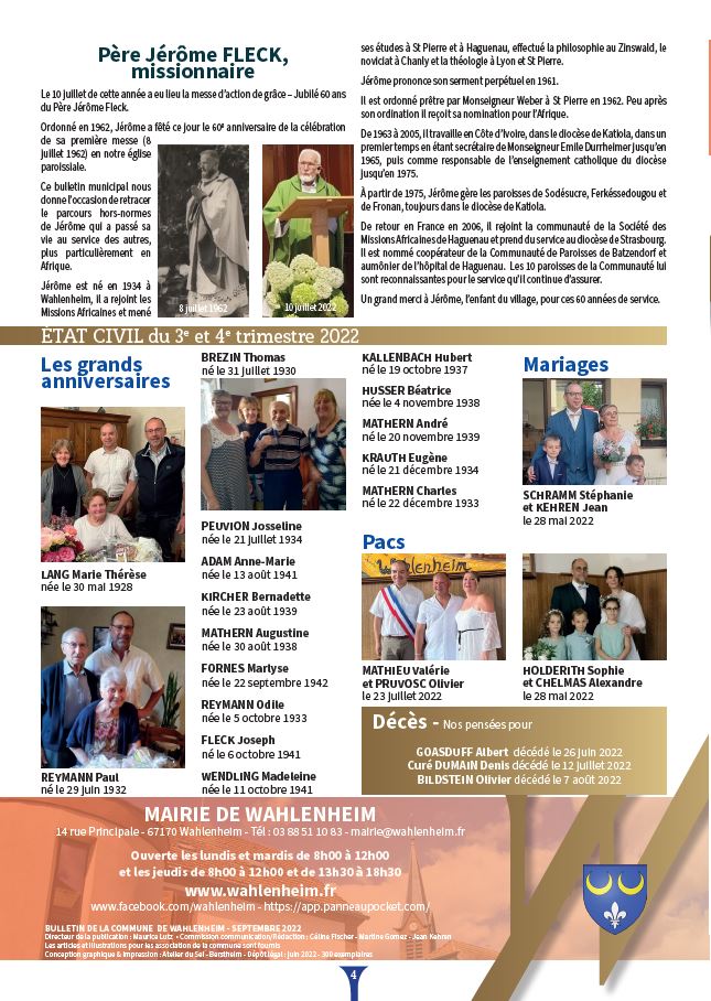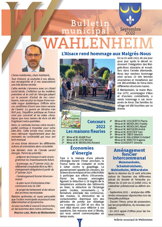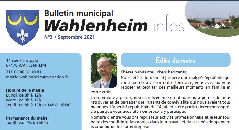 Bulletin « Wahlenheim Infos » numero3 (septembre 2021) :