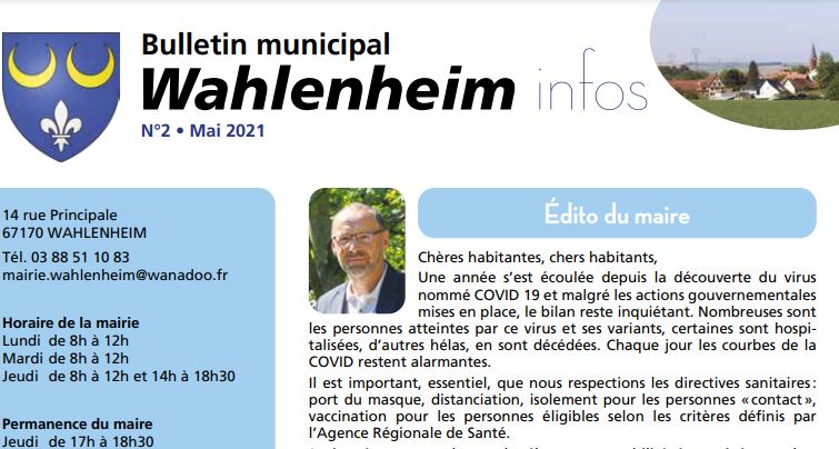 Bulletin « Wahlenheim Infos » numero2 (mai 2021) :