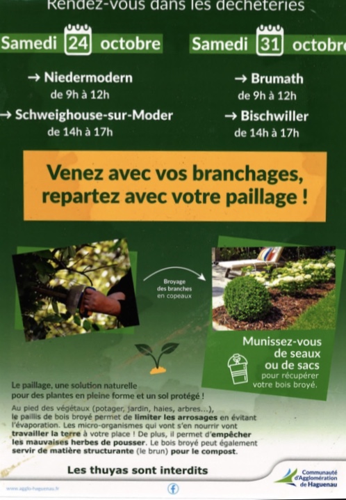 - Le samedi 24 octobre de 9h à 12h, à la déchèterie de Niedermodern